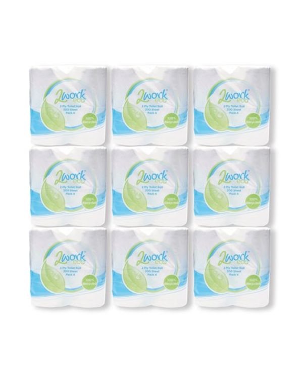 2Work Recycled Toilet Roll 2-Ply 200 Sheets (Pack of 36) KF03809
