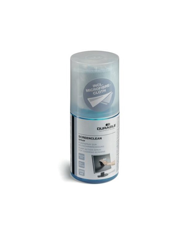 Durable Screenclean Cleaning Spray 200ml Can with Microfibre Cloth 582300