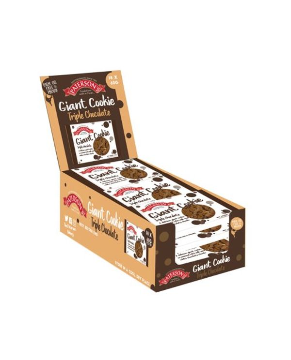 Patersons Giant Cookie Triple Chocolate 60g (Pack of 18) F5318