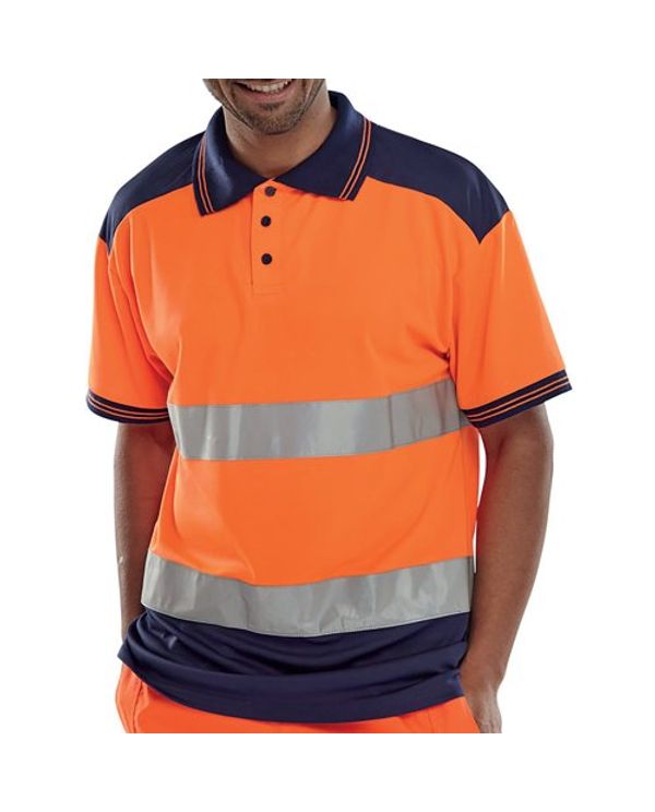 Beeswift PK Two Tone High Visibility Short Sleeve Polo Shirt Orange/Navy Blue S CPKSTTENORS