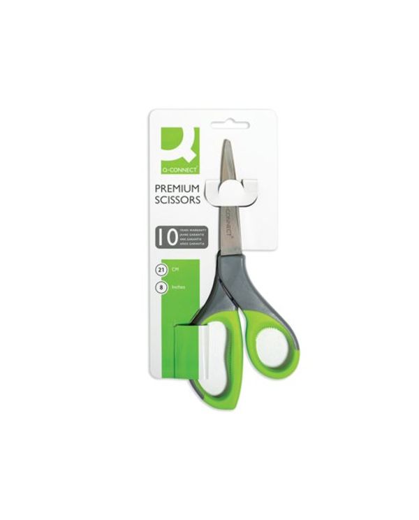 Q-Connect Premium Ergonomic Scissors 210mm Stainless Steel Blades Green/Grey Handle KF03987