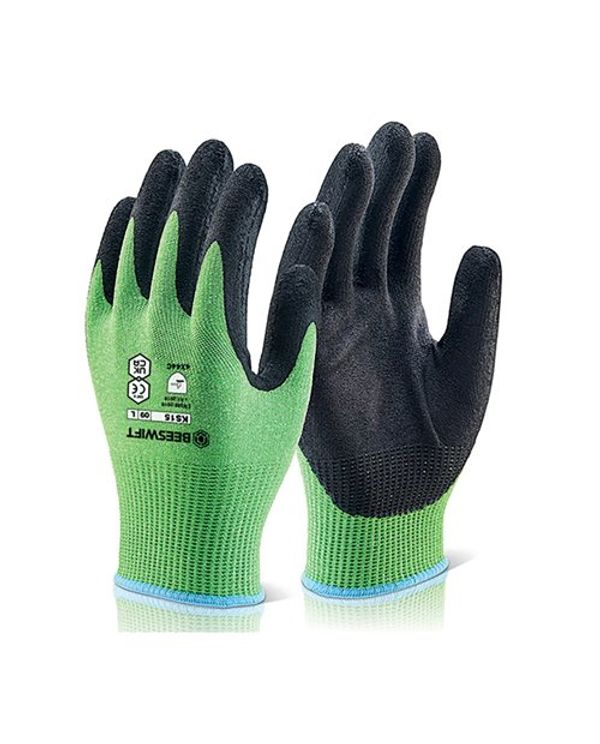 Beeswift Kutstop Microfoam Nitrile Gloves Cut Level 5 Green M KS15m