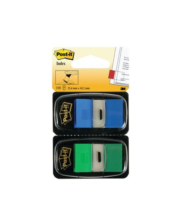 Post-it Index Tabs Green and Blue (100 Pack) 680-GB2