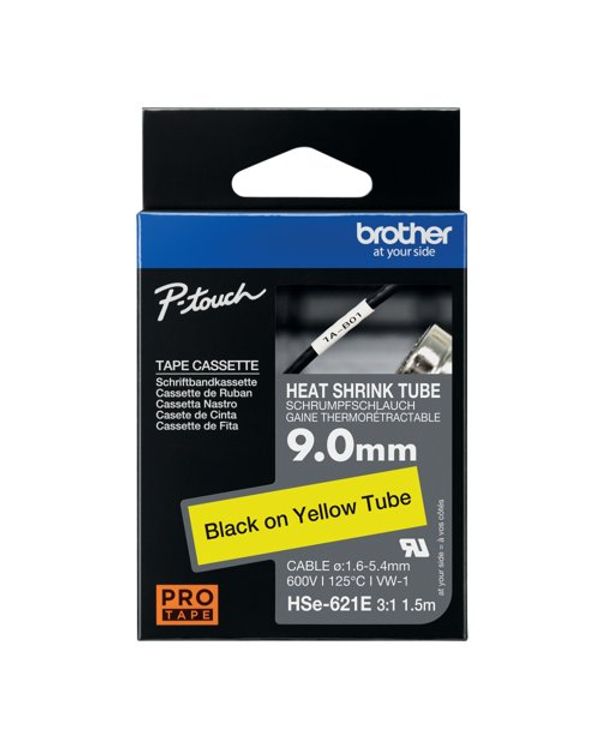 Brother HSe Heat Shrink Tube Tape Cassette 9.0mm x 1.5m Black on Yellow HSe621E
