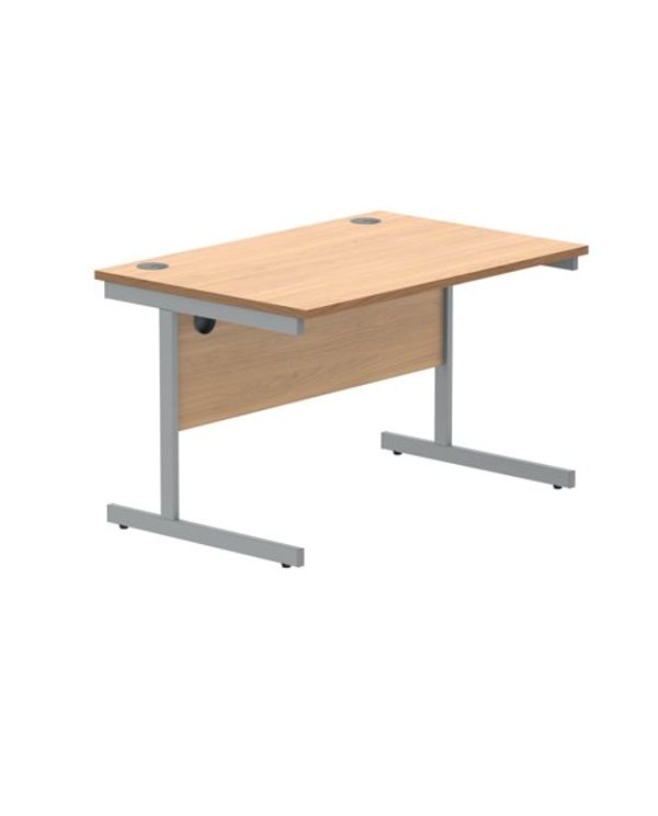 Polaris Rectangular Single Upright Cantilever Desk 1200x800x730mm Norwegian Beech/Silver KF821570