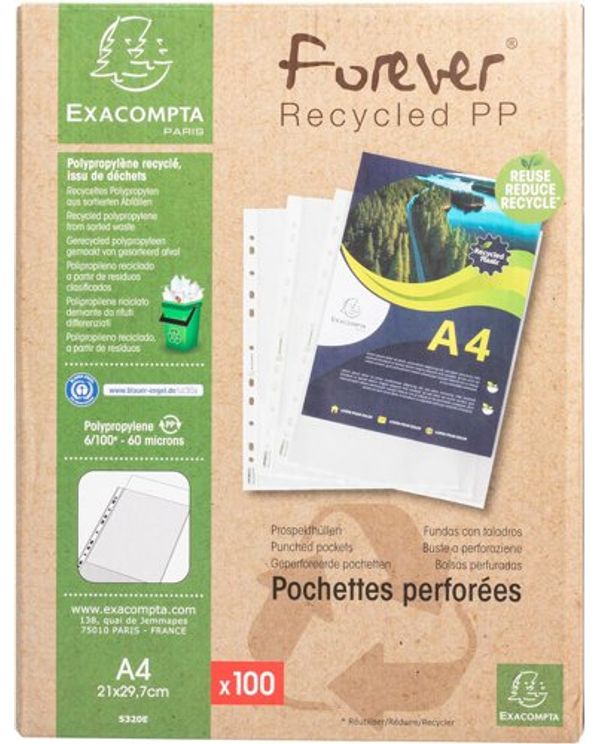 Exacompta OPAK Recycled Punched Pockets 60 micron A4 (Pack 100) 5320E