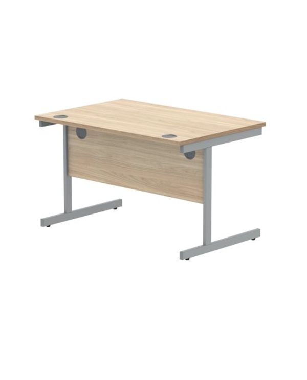 Polaris Rectangular Single Upright Cantilever Desk 1200x800x730mm Canadian Oak/Silver KF821690