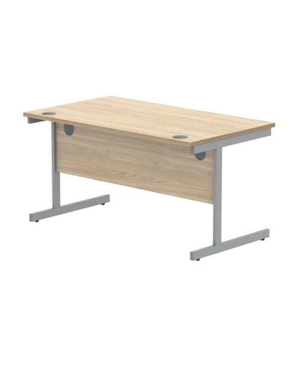 Polaris Rectangular Single Upright Cantilever Desk 1400x800x730mm Canadian Oak/Silver KF821700