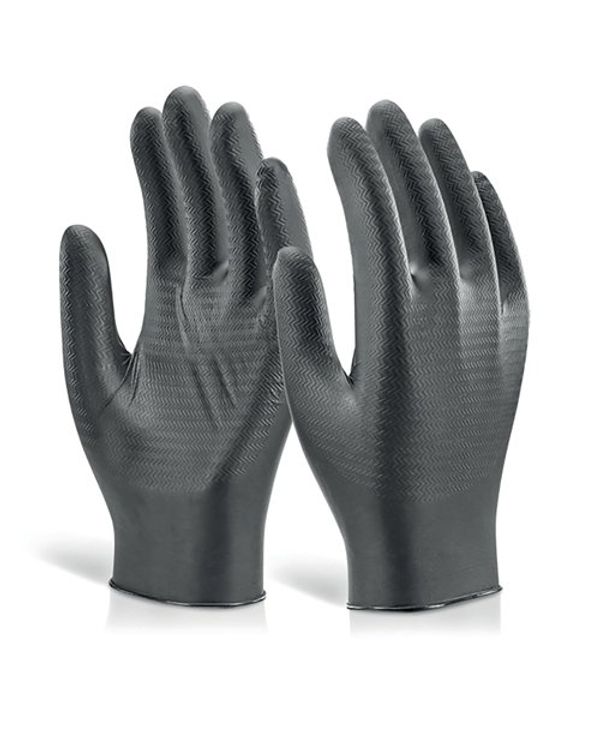 Beeswift Nitrile Disposable Gripper Gloves Powder Free Black XL (Pack of 1000) GZNDG10BLXL