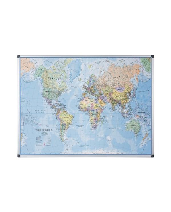 Bi-Office Maya Magnetic World Map Board 120x90cm MAP0100802
