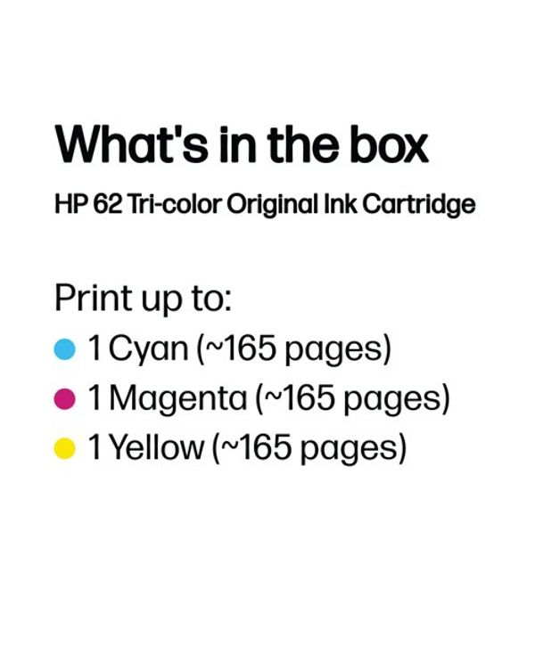 HP 62 Original Ink Cartridge 4.5-ml Tri-color C2P06AE