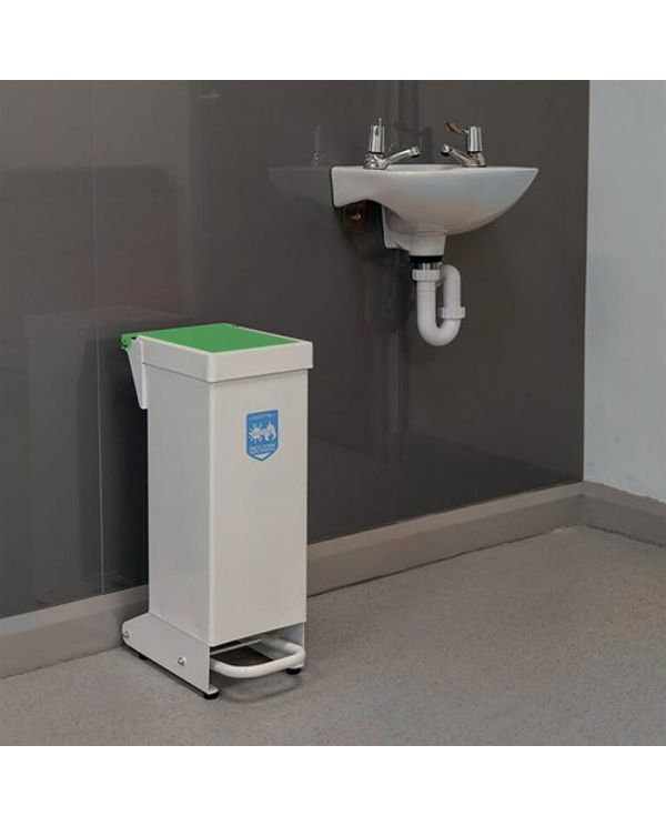 Fire Retardant Steel Sackholder White Body with Green Lid 28L 410362