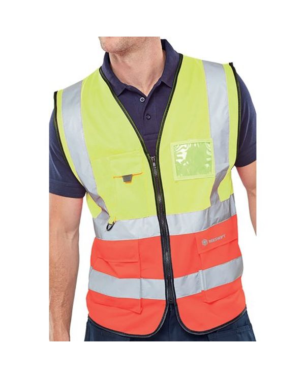 Beeswift High Visibility Two Tone Executive Waistcoat Saturn Yellow/Red XS HVWCTTSYREXS