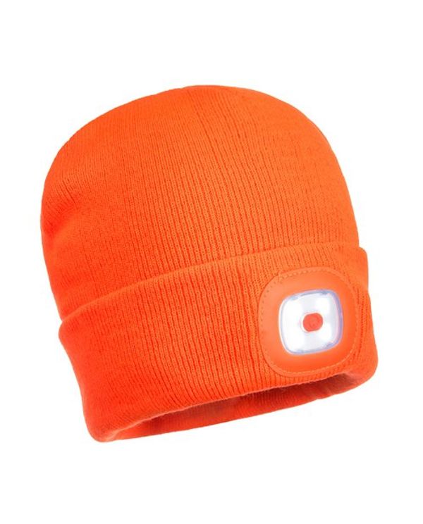 Portwest Beanie USB Rechargeable LED Head Light Orange (Pack of 12)