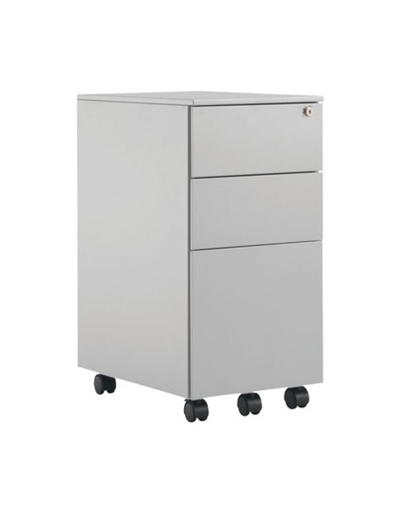 First 3 Drawer Under Desk Pedestal Slimline Steel 300x470x615mm Silver KF98515