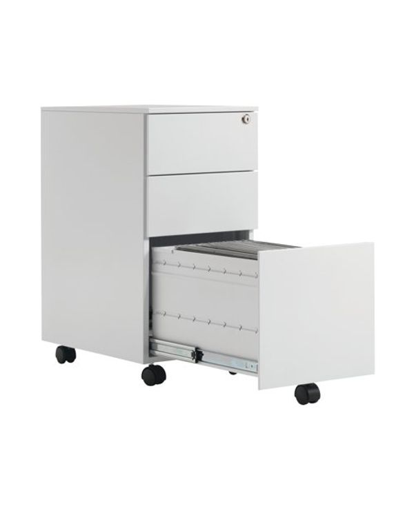 First 3 Drawer Under Desk Pedestal Slimline Steel 300x470x615mm White KF98516