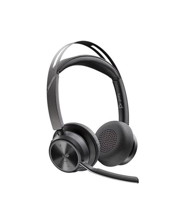 POLY Voyager Focus 2 Microsoft Teams Certified USB-C-C Headset plus USB-C/A Adapter and Charging Stand