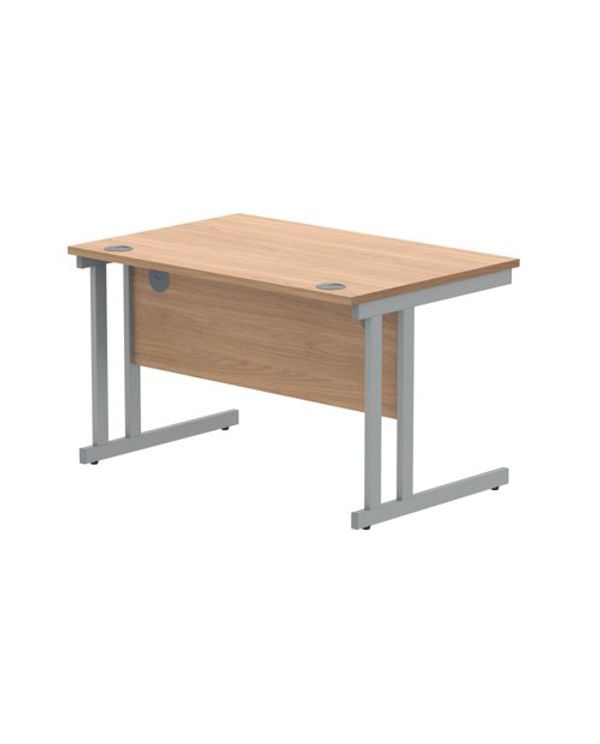 Polaris Rectangular Double Upright Cantilever Desk 1200x800x730mm Norwegian Beech/Silver KF822050