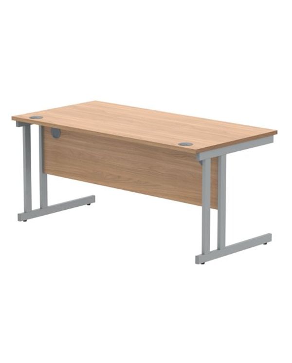Polaris Rectangular Double Upright Cantilever Desk 1600x800x730mm Norwegian Beech/Silver KF822070