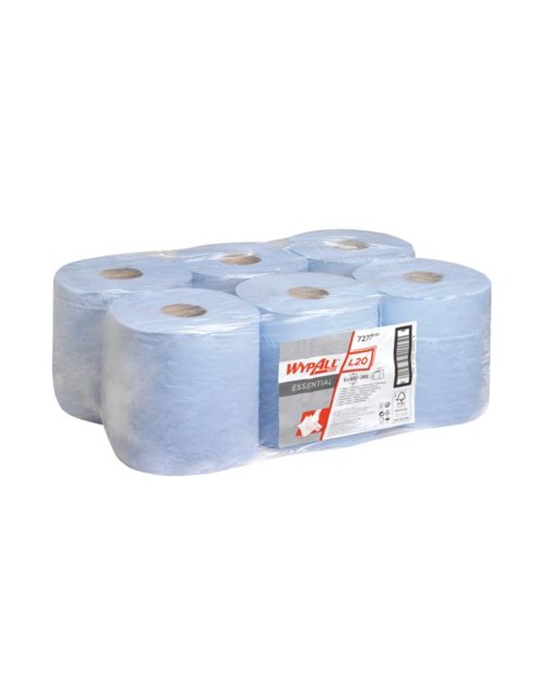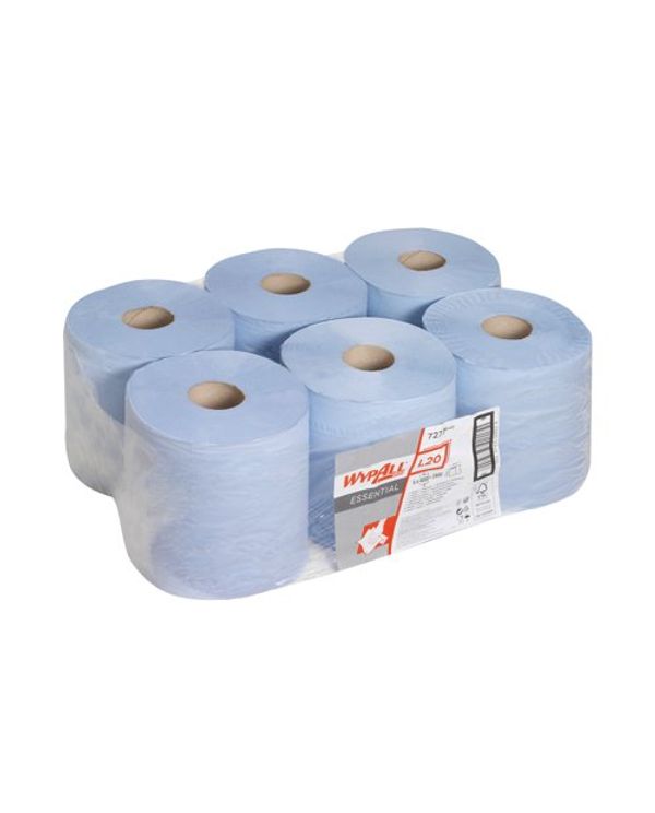 Wypall L20 Essential Centrefeed Wiping Paper Roll 2 Ply Blue (Pack of 6) 7277