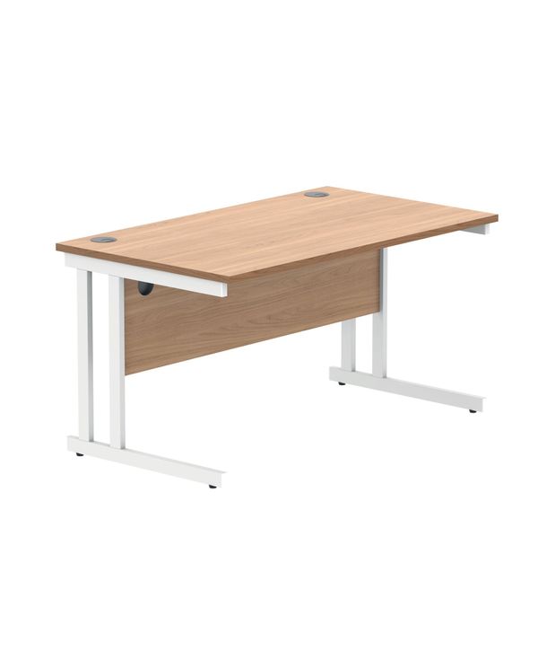 Polaris Rectangular Double Upright Cantilever Desk 1400x800x730mm Norwegian Beech/White KF822140