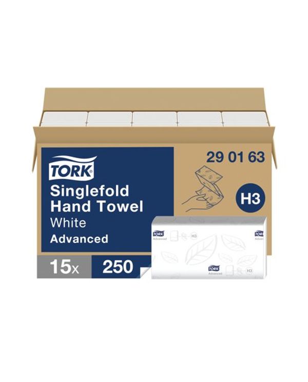 Tork Singlefold Hand Towel Advanced White 250 Sheets (Pack of 15) 290163