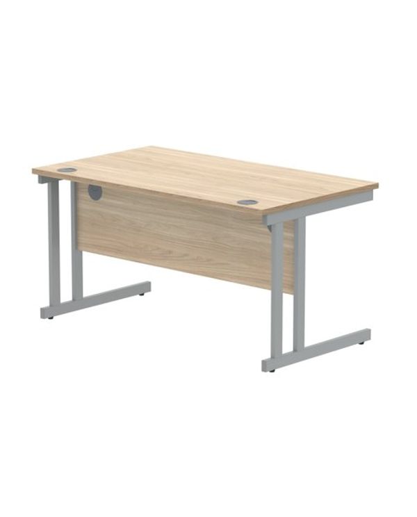 Polaris Rectangular Double Upright Cantilever Desk 1400x800x730mm Canadian Oak/Silver KF822220