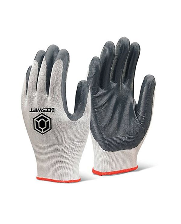 Beeswift Nitrile P/C Polyester Gloves Grey Small (Pack of 10) EC7NGYS