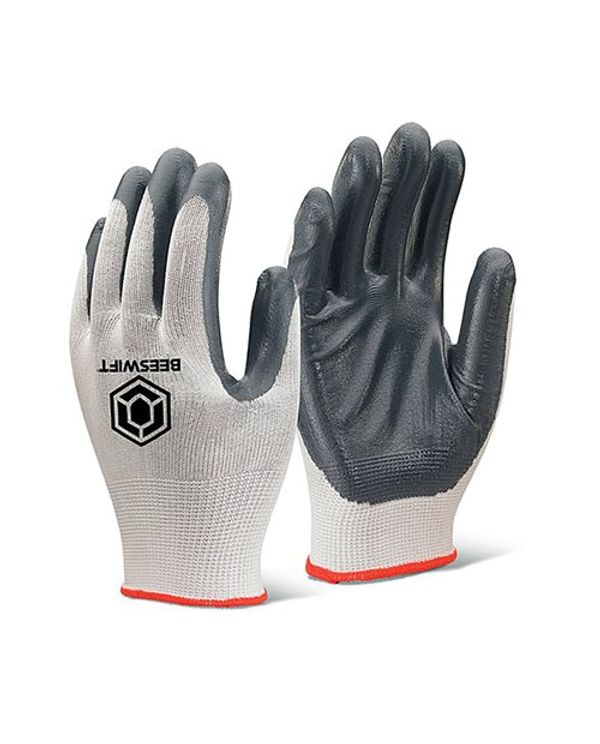 Beeswift Nitrile P/C Polyester Gloves Grey Large (Pack of 10) EC7NGYL