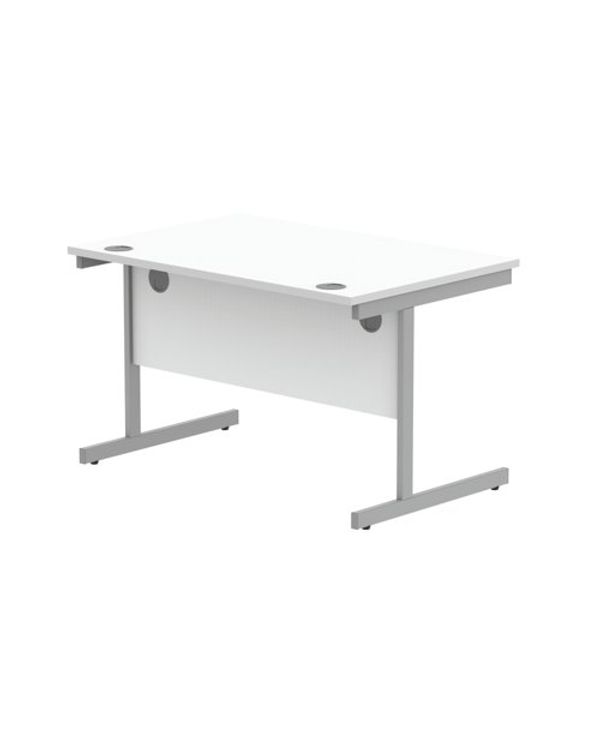 Astin Rectangular Single Upright Cantilever Desk 1200x800x730mm Arctic White/Silver KF803537