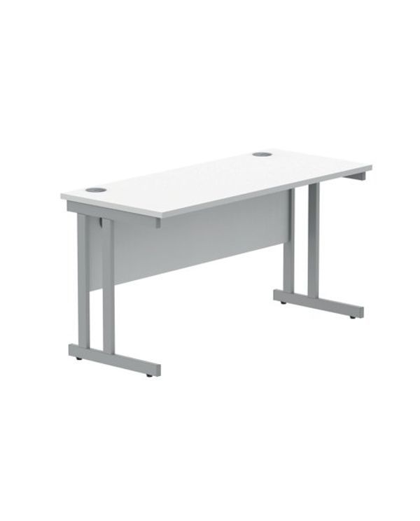 Polaris Rectangular Double Upright Cantilever Desk 1400x600x730mm Arctic White/Silver KF822350
