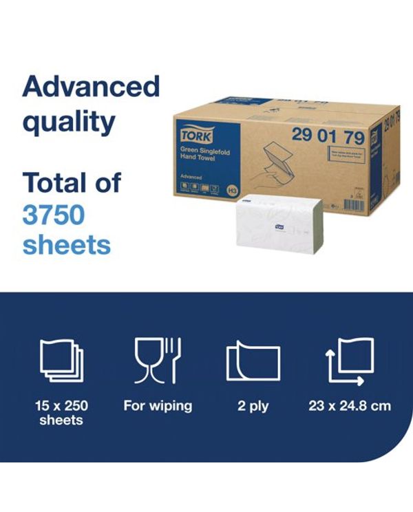 Tork Singlefold Hand Towels Green (Pack of 3750) 290179