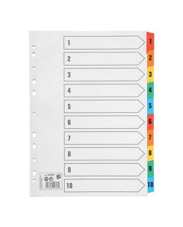 5 Star Office Index 1-10 Multipunched Mylar-reinforced Multicolour-Tabs 150gsm A4 White