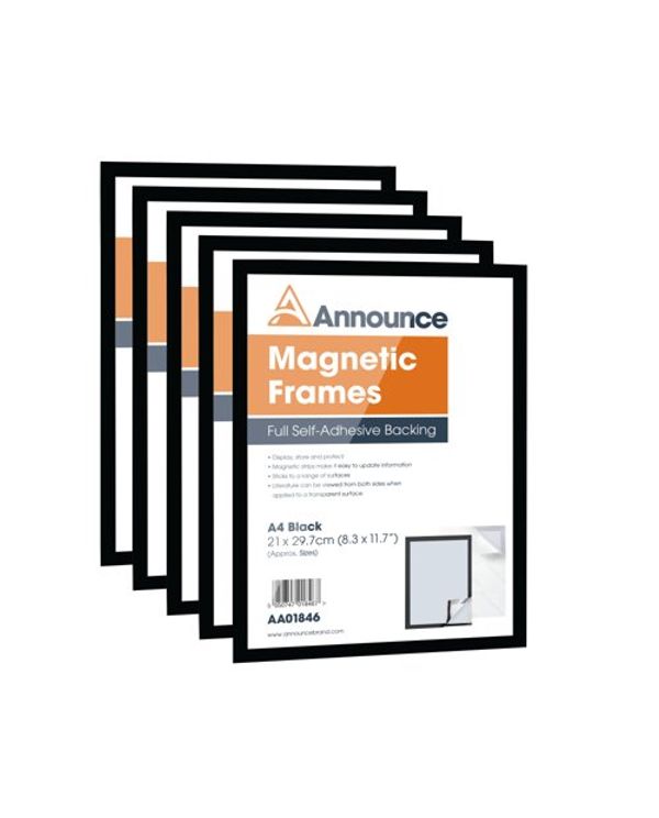 Announce Magnetic Frame A4 Black (Pack of 5) AA01847