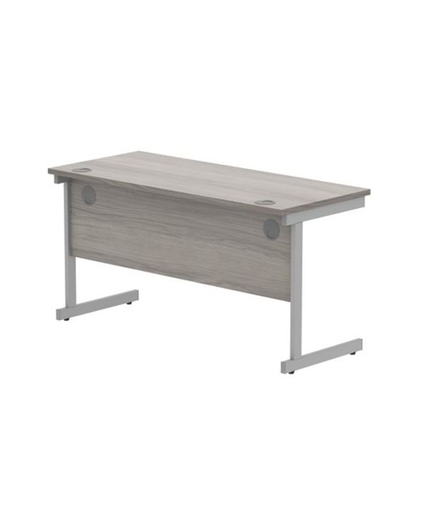 Astin Rectangular Single Upright Cantilever Desk 1400x600x730mm Alaskan Grey Oak/Silver KF803657