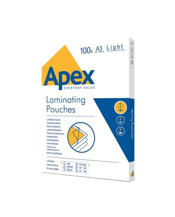 Fellowes Apex A3 Light Laminating Pouches Clear (Pack of 100) 6001901