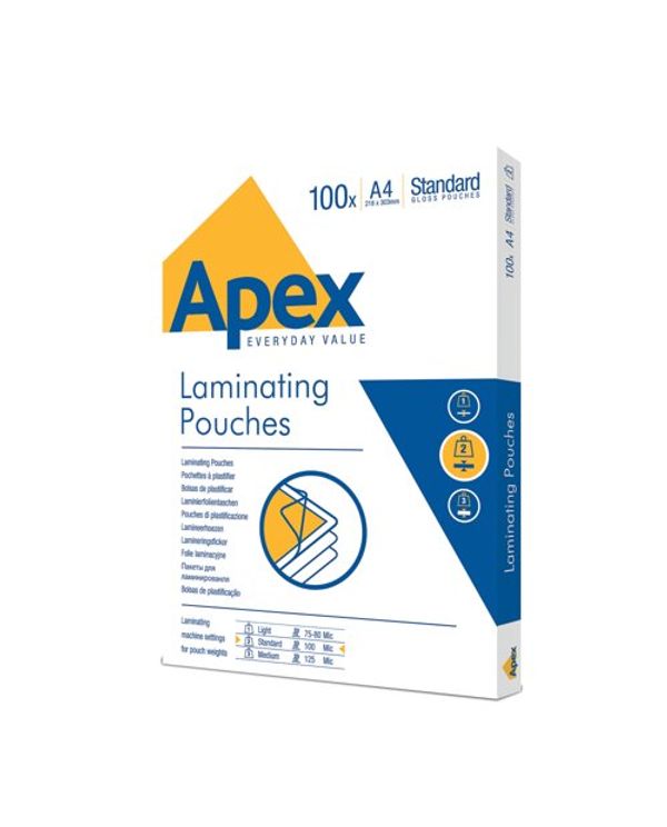 Fellowes Apex A4 Laminating Pouches Clear (Pack of 100) 6003301