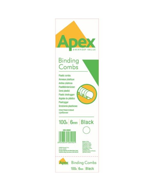 Fellowes Apex Plastic Binding Combs 6mm Black (Pack of 100) 6200102
