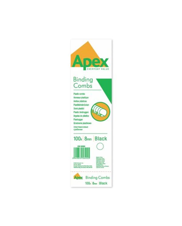 Fellowes Apex Plastic Binding Combs 8mm Black (Pack of 100) 6200301