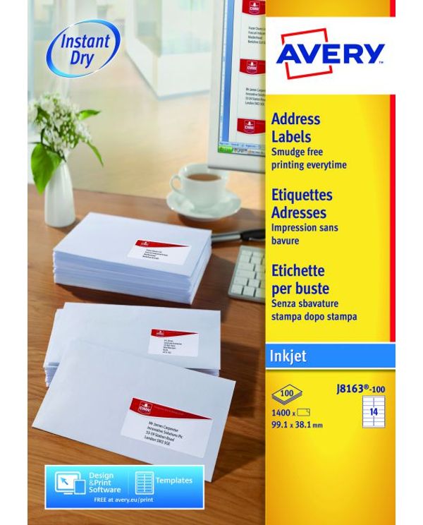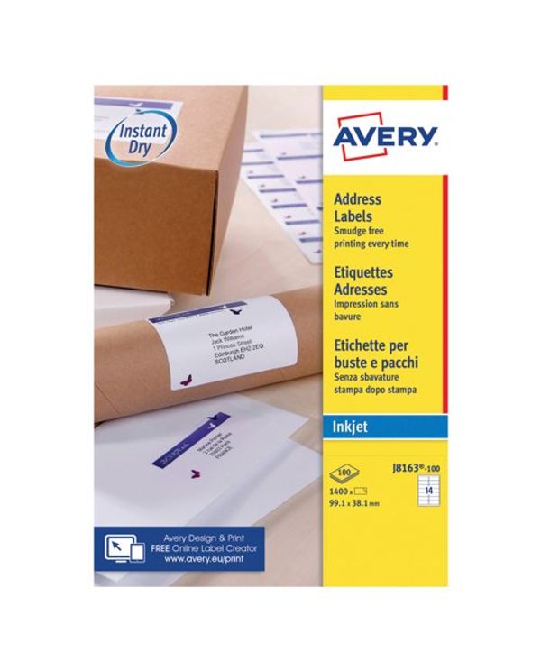 Avery Inkjet Address Labels QuickDRY 99.1x38.1mm 14 Per Sheet White (Pack of 1400) J8163-100