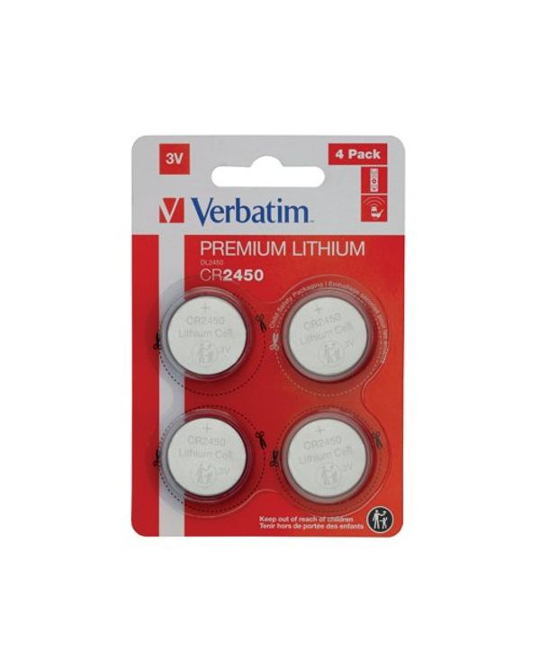 Verbatim CR2450 3V Premium Lithium Battery (Pack of 4) 49535