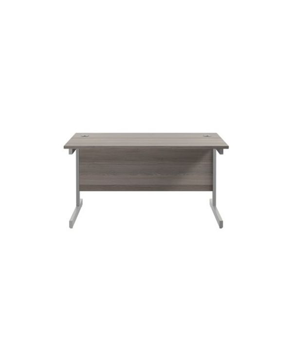 Jemini Single Upright Rectangular Desk 1400x800x730mm Grey Oak/Silver KF822651