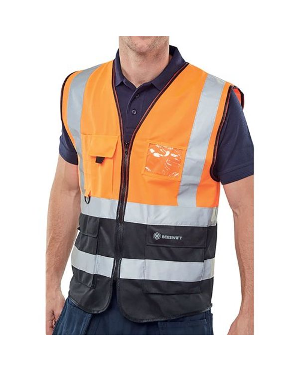 Beeswift High Visibility Two Tone Executive Waistcoat Orange/Black M HVWCTTORBLM