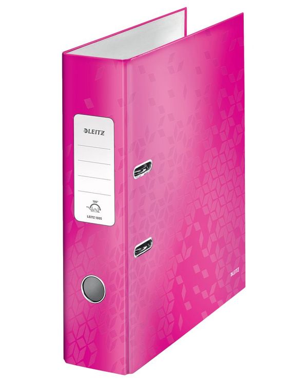 Leitz Wow 180 Lever Arch File 80mm A4 Pink (Pack of 10) 10050023