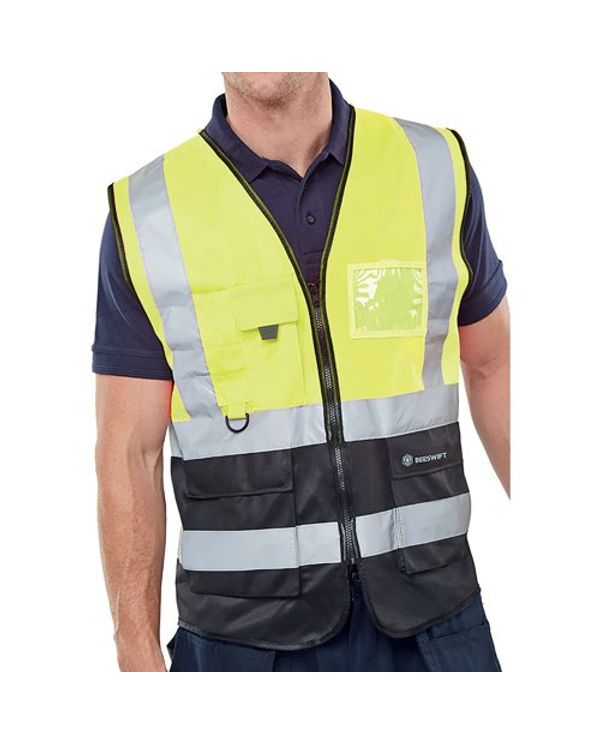 Beeswift High Visibility Two Tone Executive Waistcoat Saturn Yellow/Black XL HVWCTTSYBLXL