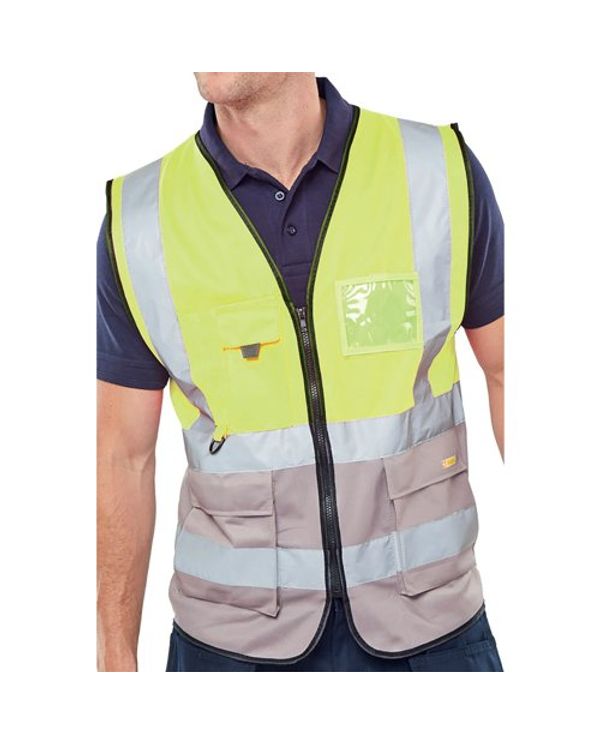 Beeswift High Visibility Two Tone Executive Waistcoat Saturn Yellow/Grey M HVWCTTSYGYM