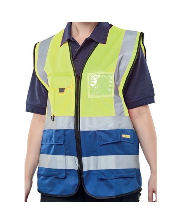 Beeswift High Visibility Two Tone Executive Waistcoat Saturn Yellow/Navy Blue 2XL HVWCTTSYN2XL