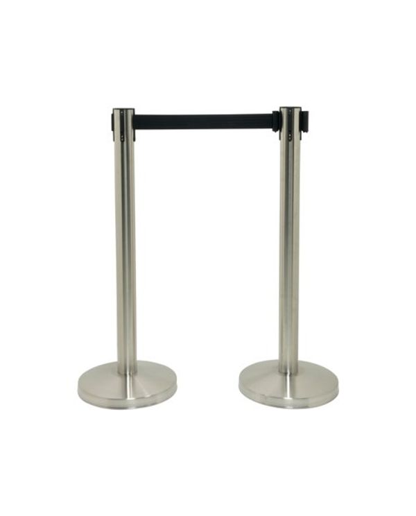 Securit Budget Barrier Pole Set with Retractable Belt Chrome/Black (Pack of 2) RS-RT-LW-CH