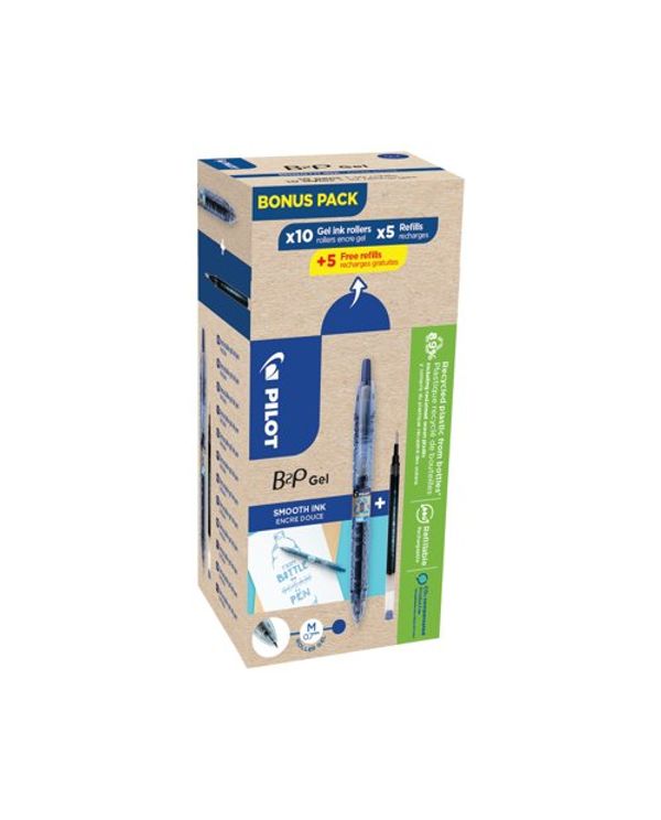 Pilot B2P GreenPack Gel Ink Rollerball Pen/Refill 10 Pens+10 Refills Blue (Pack of 20) WLT556206