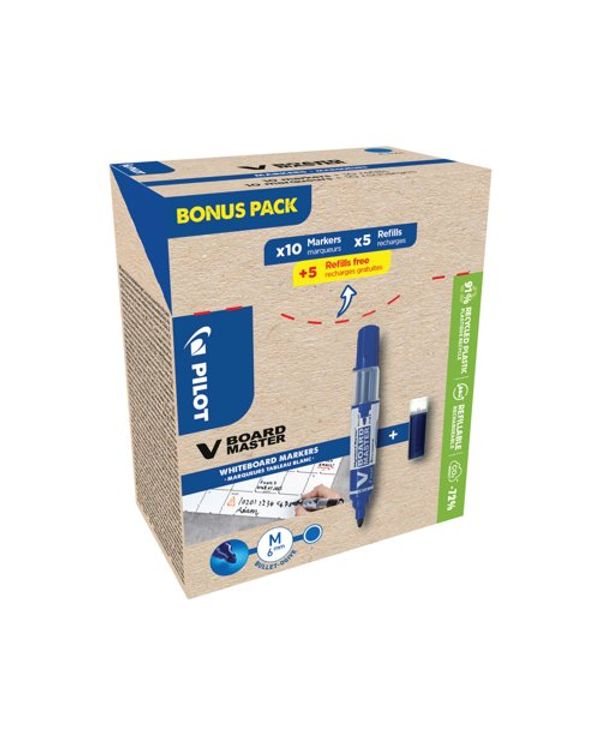 Pilot V-Board Master Drywipe 10 Markers + 10 Refills Bullet Tip Blue (Pack of 20) WLT556282
